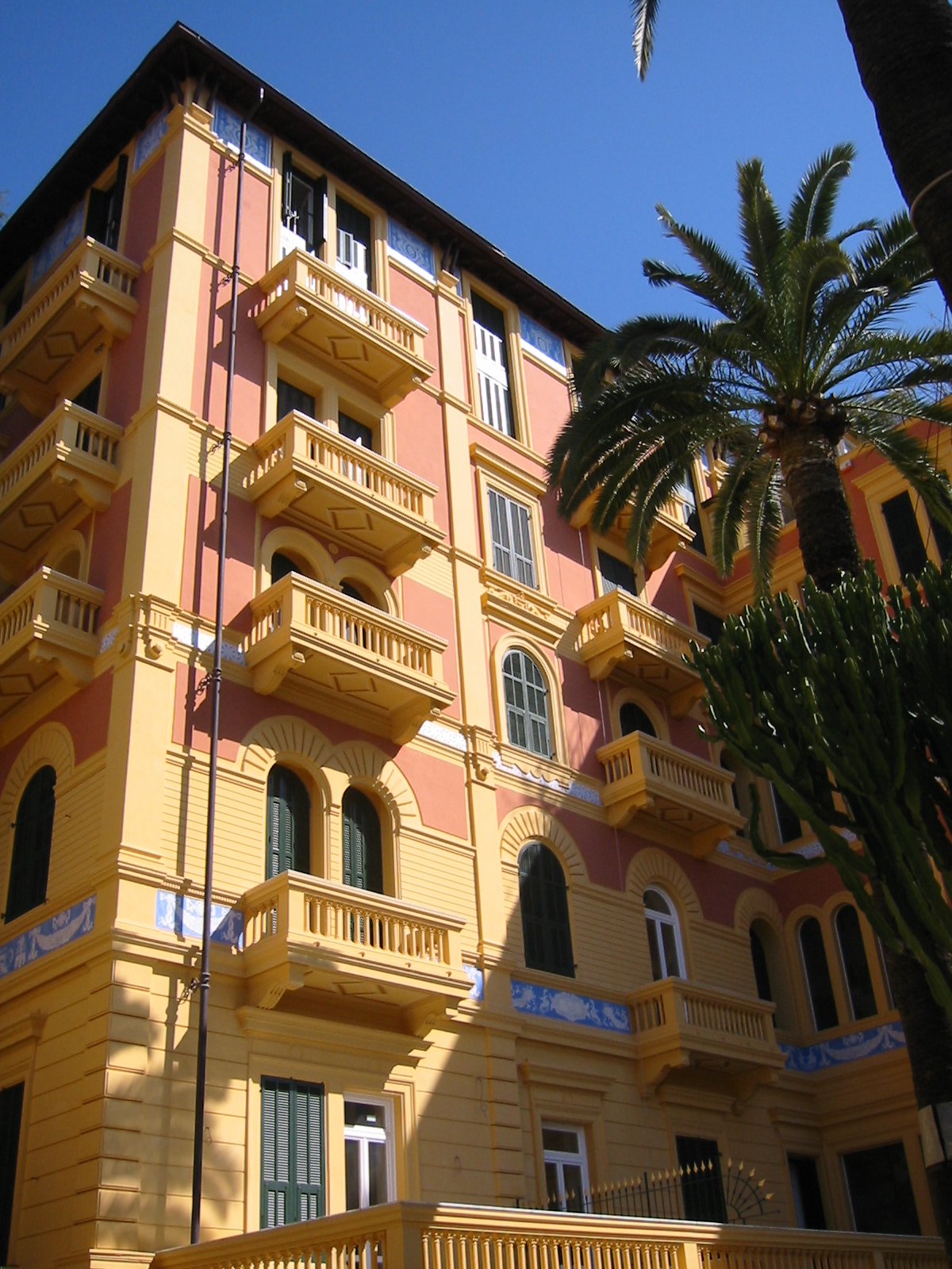 Sanremo, zona chiesa russa, a pochi passi di distanza dal casinò e corso Matteotti, in posizione molto soleggiata e tranquilla, situato in un palazzo d’epoca al piano 3° con ascensore direttamente in casa, appartamento molto luminoso di ca. 120 mq. ed arredato su misura, composto da: doppio ingresso, soggiorno con cucina a vista, 2 camere matrimoniali con bagni in suite, 1 camera, 1 bagno di servizio, due balconi con vista mare e verde, ottima esposizione: sud – ovest, completano la proprietà una cantina e un grande posto auto coperto privato in autorimessa a pochi metri di distanza dal condominio, riscaldamento centralizzato.