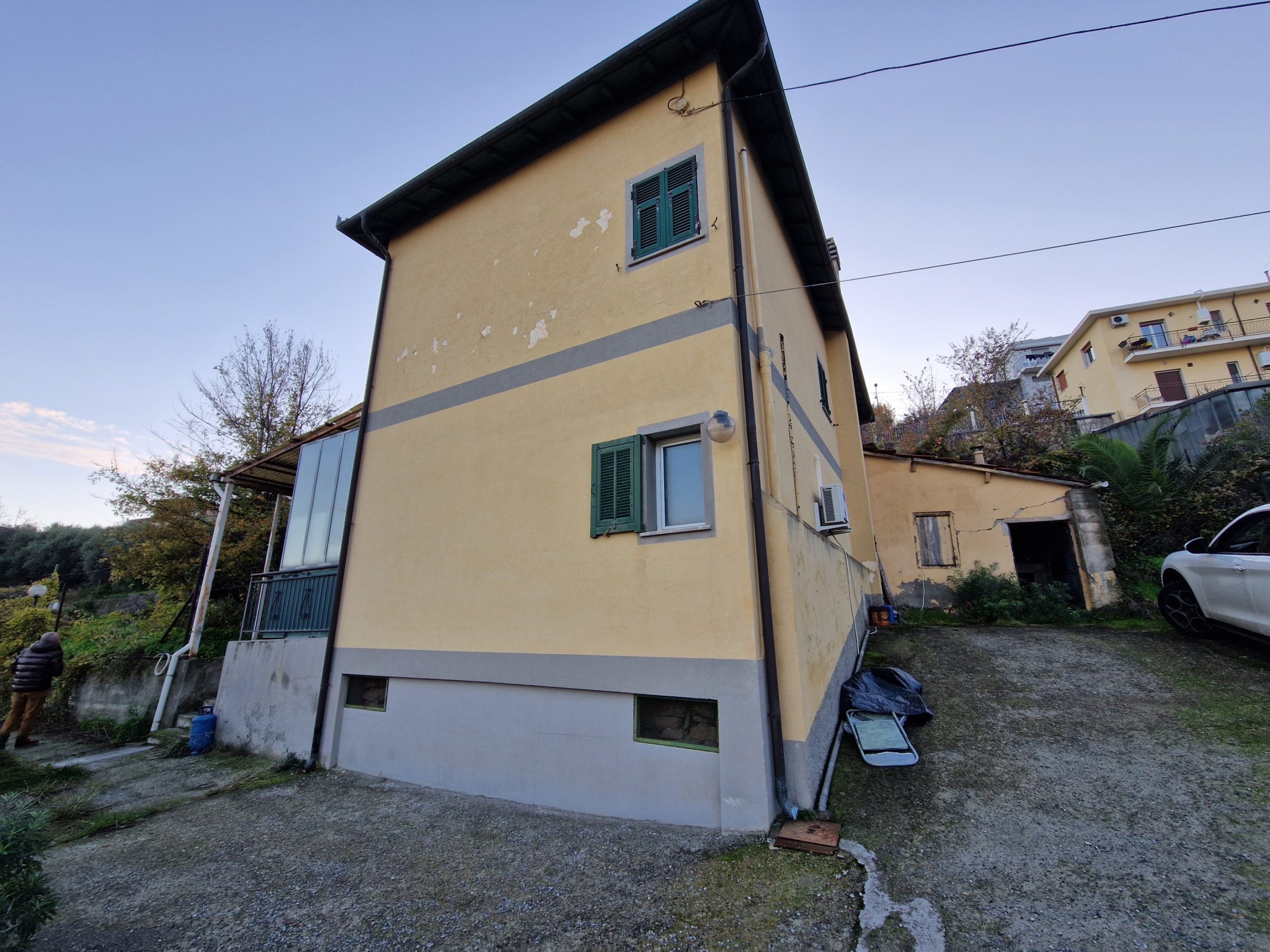 Sanremo, zona Madonna della Costa, strada San Giovanni, a 5 minuti di distanza dal centro, in posizione molto soleggiata con vista mare, tipica casa ligure di ca. 90 mq. disposta su 2 livelli da ristrutturare e con possibilità di ampliamento, situato su ampio terreno di ca. 3.000 mq. composto da 2 fasce larghe e pianeggianti con ca. 60 piante d’ulivo e magazzini condonati.